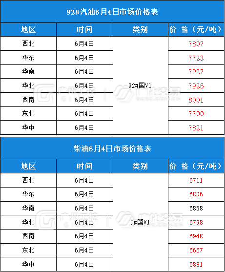 油品类报价(6月4日)
