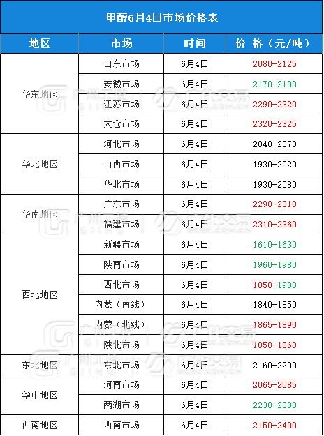 醇类报价(6月4日)