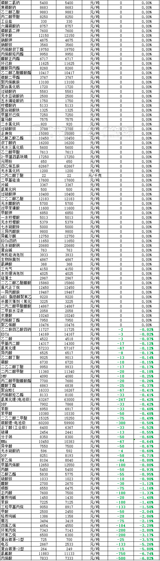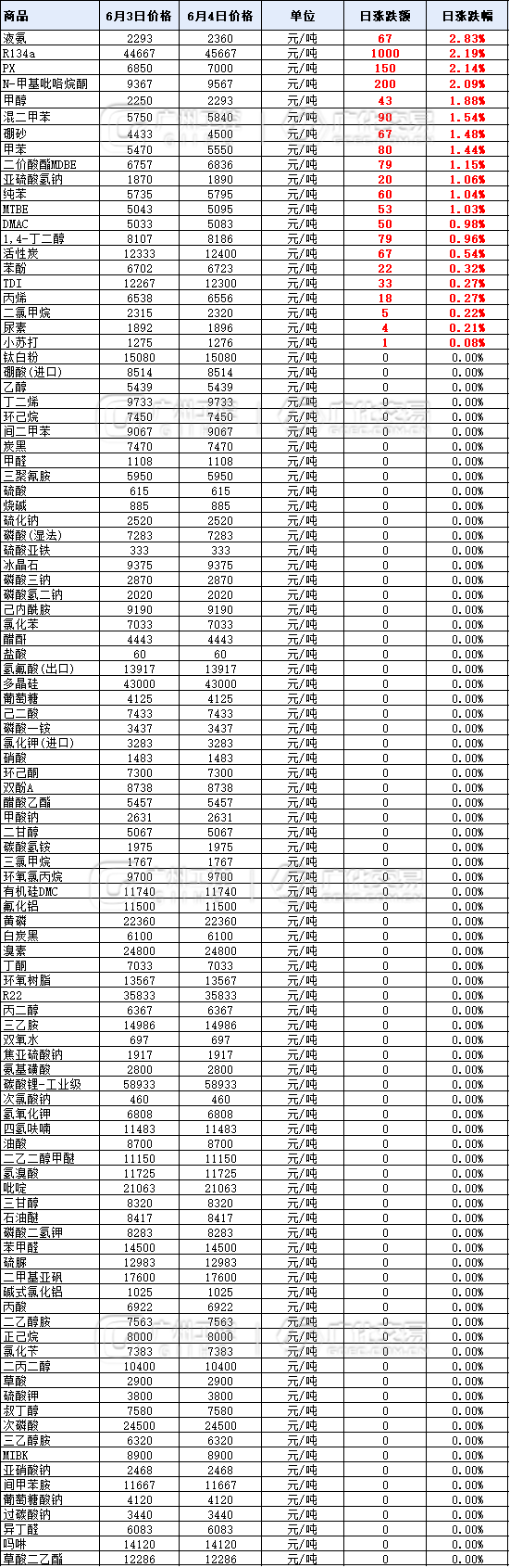 化工大宗价格(6月4日)