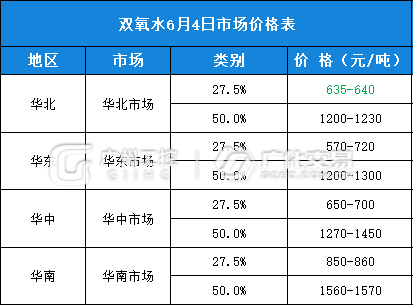 双氧水报价(6月4日)
